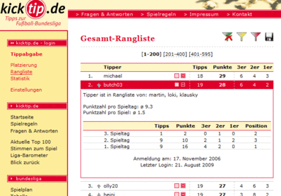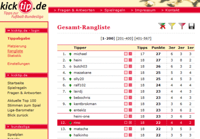 Zur besseren Übersicht und zum schnellen Auffinden von sich selbst und Interessanten anderen Tippern oder Freunden, hilft die persönliche Rangliste (siehe Folgeseite).